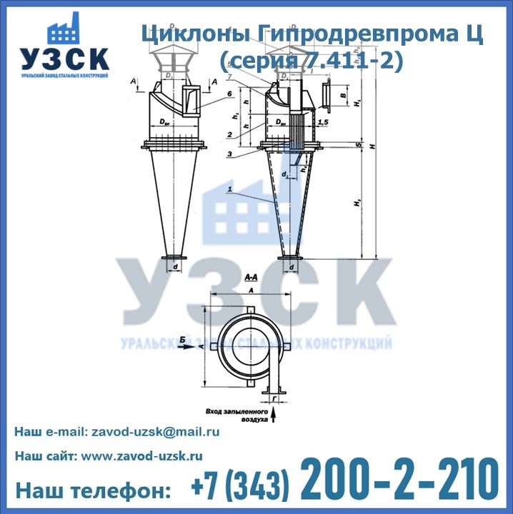 Циклоны Гипродревпрома Ц (серия 7.411-2) высокого качества можно купить в компании «УЗСК» в Шахтинске. Наши специалисты предоставят всю необходимую информацию информацию и помогут с выбором модели циклона. Подробные технические характеристики, конструкцию, параметры, ассортимент и стоимость продукции можно также найти на сайте УЗСК.