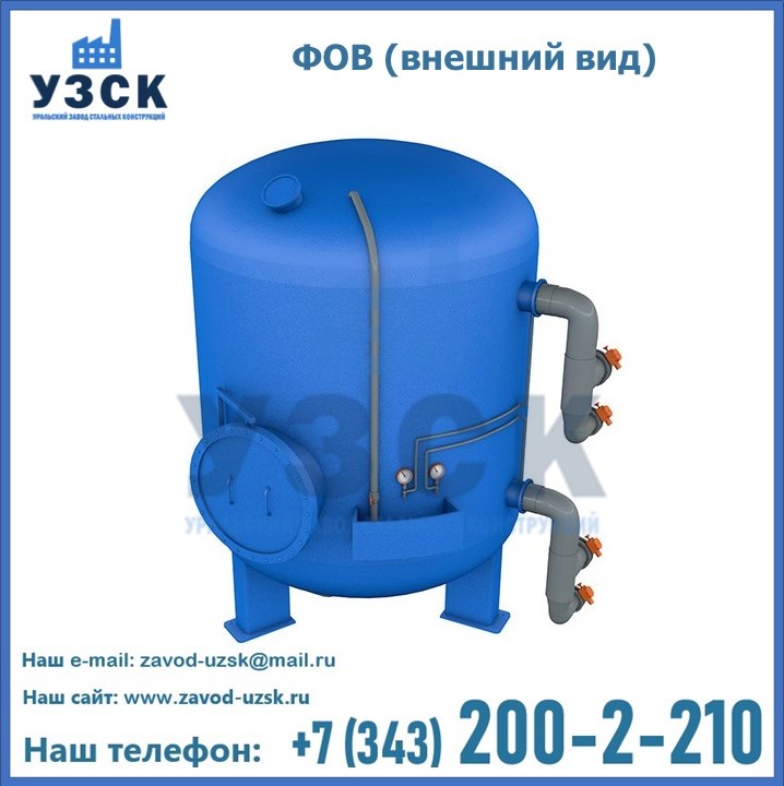 Удаление взвешенных веществ различного уровня дисперсности из рабочих жидкостей эффективно проводит фильтр осветлительный типа ФОВ (скорый или механический) — вертикально-цилиндрической формы установка, разработанная для систем водоподготовки различного класса. Оборудование представляет собой однокамерный агрегат для очистки воды рекомендованный для применения на станциях очистки стоков, в коммунальных котельных, на ТЭЦ, в промышленных отопительных системах и пр. Заказать производство ФОВ фильтров предлагает наш Уральский завод стальных конструкций в Шахтинске. У нас можно купить фильтрационное оборудование различного класса и типа, в том числе фильтры ФОВ из нержавеющей стали.