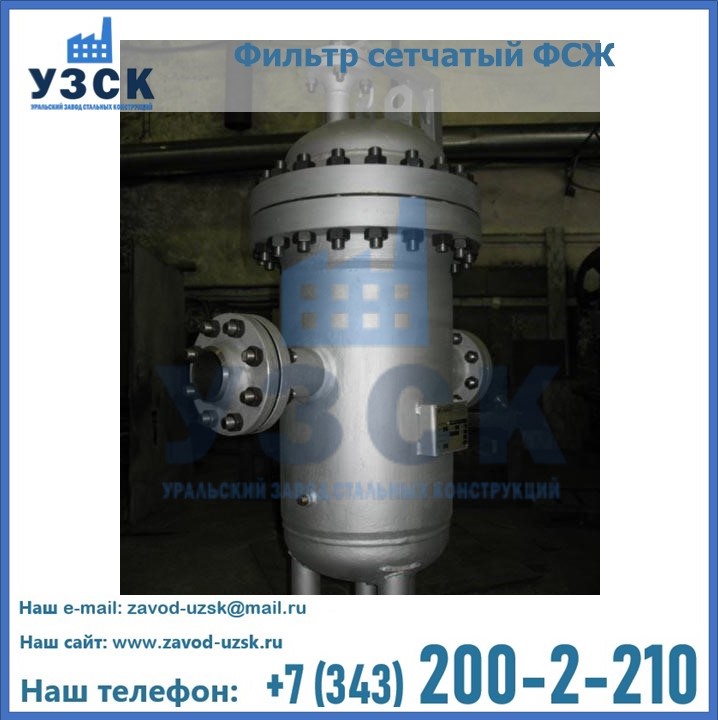 Очистку перекачиваемых жидкостей на предприятиях нефтяной, пищевой, горнорудной, фармацевтической и других отраслей промышленности эффективно выполнять с помощью жидкостного сетчатого фильтра — емкостное оборудование цилиндрической формы со съемной крышкой и элементом фильтрации внутри. Оснащенные им всасывающие линии насосных станций и установок защищены от проникновения твердых частиц в функциональные узлы гидравлической системы. Оборудование служит для перекачивания токсичных, агрессивных и иных эмульсий, суспензий, жидкостей. Купить фильтр сетчатый жидкостный ФСЖ в Шахтинске с гарантией производителя предлагает «Уральский завод стальных конструкций». Мы выполняем проектирование и изготовление ФСЖ по индивидуальным требованиям (климатическая зона, транспортируемая жидкость).