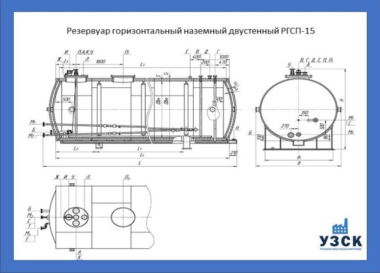 РГСДн-15: горизонтальный резервуар двустенный наземного расположения;